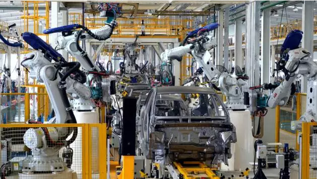 参观中,全自动化机器人焊装生产线吸引了中外领导一行的驻足了解