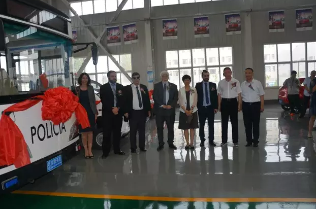 7月13日上午,河北跃迪新能源科技集团有限公司向乌拉圭东岸共和国捐赠车辆仪式在跃迪集团总装车间顺利举行。出席本次捐赠仪式的领导和嘉宾有:乌拉圭内政部长爱德华多·博诺米、乌拉圭国家警察局局长马里奥·莱蒙·雷耶拉·潘撒多、内政部信息顾问费德里科·达尼尔·拉卡·卡尔西亚、秘书处主任恰雷斯·丹尼尔·卡雷拉·雷奥、乌拉圭驻华使馆代办劳拉·希尔瓦、乌拉圭驻华使馆国防武官米盖尔·托雷斯、乌拉圭驻华使馆中秘王蕊;河北省工信厅副厅长王学军,河北省商务厅副厅长董志方,河北省贸促会副会长张健生,石家庄市政府副市长蒋文红,石家庄市政府副秘书长杨文斌,石家庄市外办主任栾建英,石家庄市工信局、市发改委、市城管委、市工商业联合会等领导,中共元氏县委、县人民政府领导,河北省电动汽车产业协会成员,北大光华管理学院校友,河北跃迪集团董事长吕洪涛、跃迪集团副总裁兼集团汽车研究院院长刘明海等集团领导以及各界行业媒体朋友。