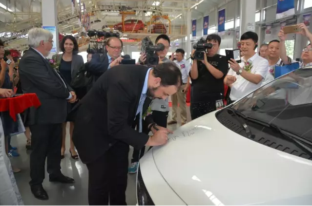 参加本次捐赠仪式的中外领导一行在跃迪集团董事长吕洪涛、跃迪副总裁兼集团汽车研究院院长刘明海的陪同下参观了跃迪汽车冲压、焊装、涂装、总装四大生产工艺车间