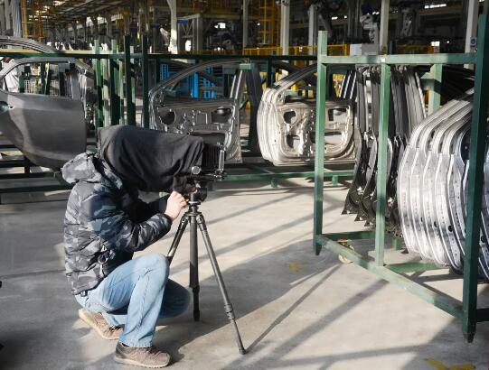 虽然天气寒冷,可摄影家们却不辞辛苦,背负沉重的摄影器材深入厂区一线,拍摄机械设备、厂房、生产生活设施等画面,并与厂区内工人详谈了解企业的发展历程。
