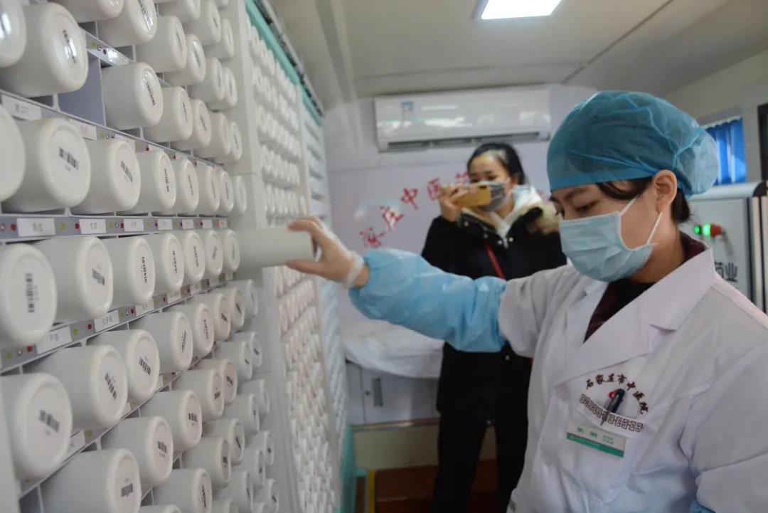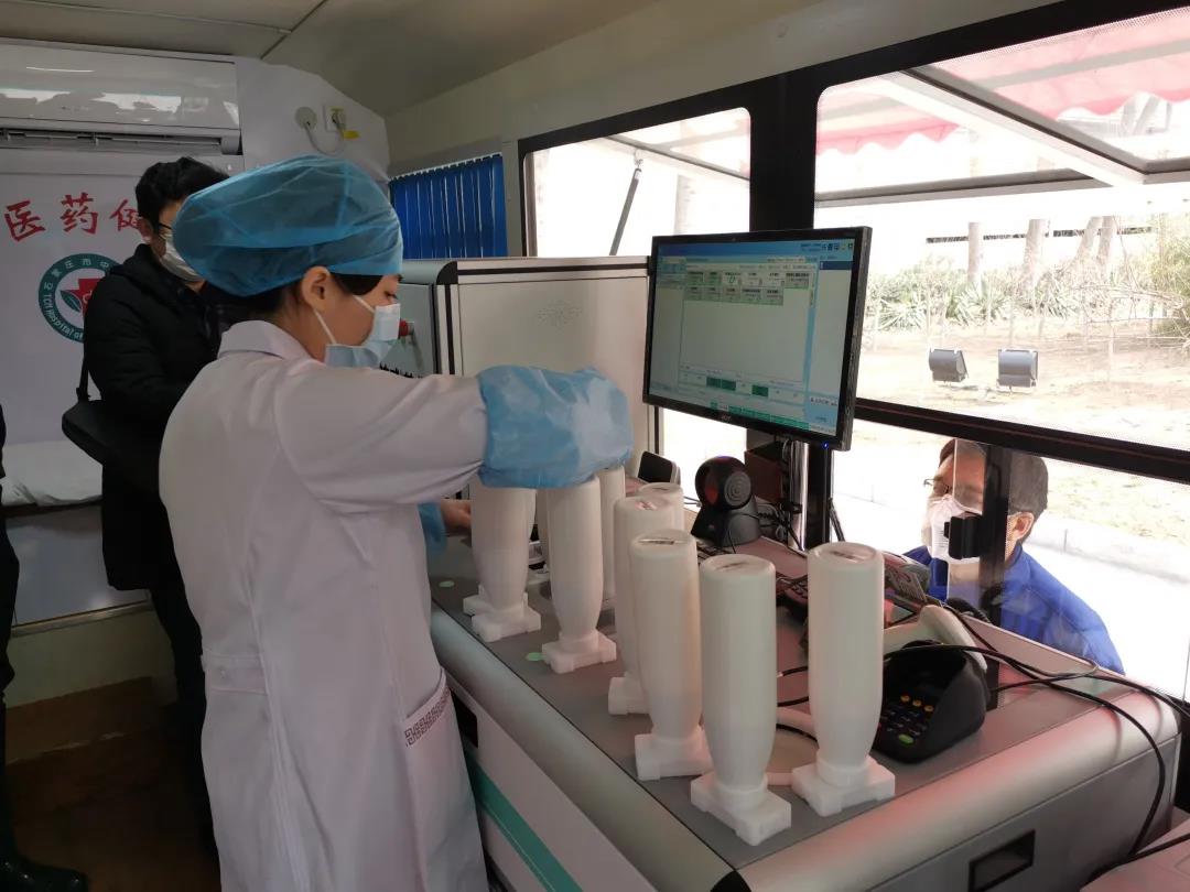 医护人员在跃迪中医药健康服务流动舱车上取药、售药