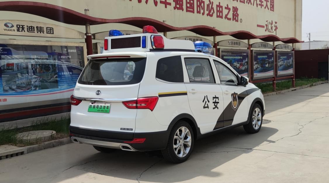 跃迪T98J电动警务巡逻车具有噪音小、机动灵活、节能环保、续驶里程远、承载力强等特点,整车采用全承载结构车身,给驾驶者带来更好的敏捷性、平稳性、舒适性和安全性;内饰布局精美,高档内饰材料抗污耐磨。更注重实用性,车身加装长排警灯,有助于提高街面见警率,增加街面巡查密度,成为了警方机动巡逻、城管执法的好帮手。目前,在全国很多社区、大型企业、机关单位、公园、院校、车站、机场、码头等地区已广泛推广使用,成为了新能源公务用车的首选品牌。