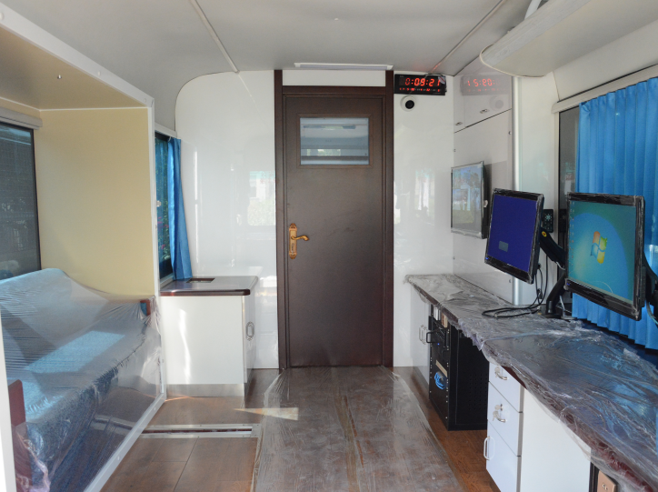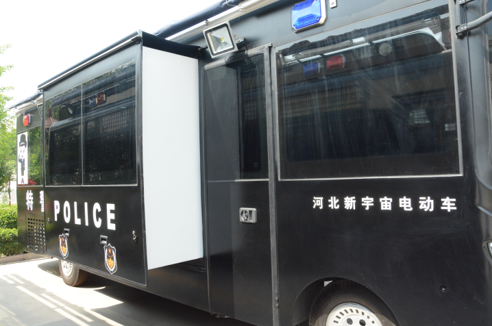 跃迪8米扩展移动警务室(电动)根据公安系统特点和移动办公的需求,开发设计的能乘坐一定工作人员的新型警务用车。配备警示宣传系统、警务办公系统、警务通信系统、监控系统、图传系统、供电系统、照明系统及简易生活设备,具有现场办公指挥、应急通信、图像4G传输、现场照明、强声广播、恶劣环境执勤等功能,能满足移动办公、警务前移、检查、卡口、维护治安等需要。