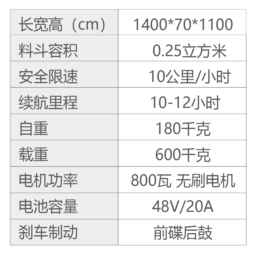 跃迪电动翻斗车是集绿色、环保及节能为一体的新型产品,无噪音,无污染,高效率,低耗能,适用性强;采用专用电瓶,电机性能可靠,安全耐用,具刹车断电功能;充足一次电可工作10-12小时;使用本车可以减少劳力力,降低劳动强度,提高生产效率,大幅度降低生产成本。在国家大力发展低碳经济的背景下,是工厂,矿山,遂道,地铁施工等运输散装物料理想的运输工具。