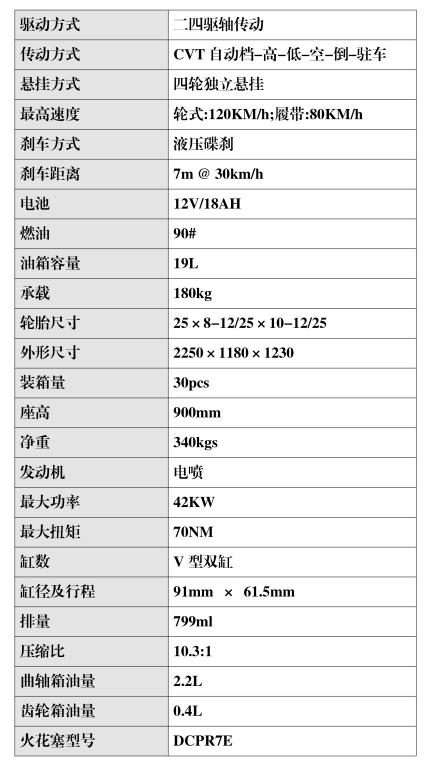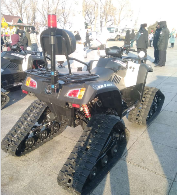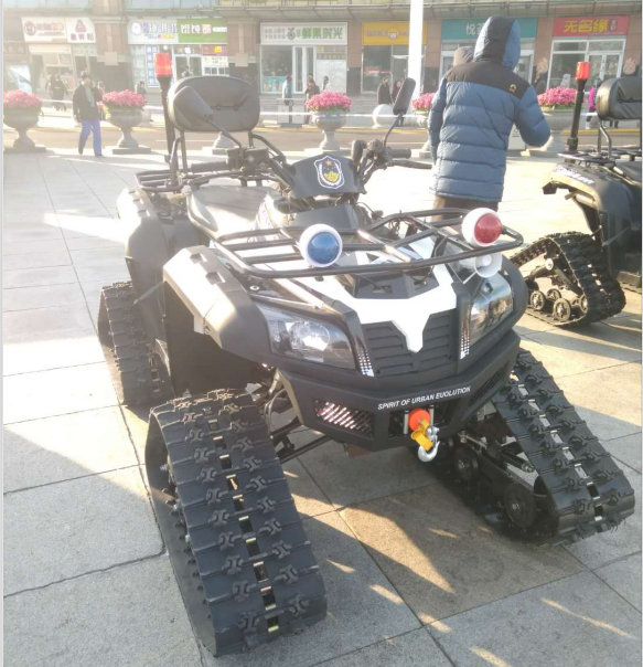 跃迪全地形车(履带),该车简单实用,越野性能好,具有多种用途,且不受道路条件的限制。冬季可使用履带式结构,夏季可换装轮式车胎,可以一年四季在冰雪路面、沙滩、沼泽、街面上行驶,适合执行各种警务任务。
