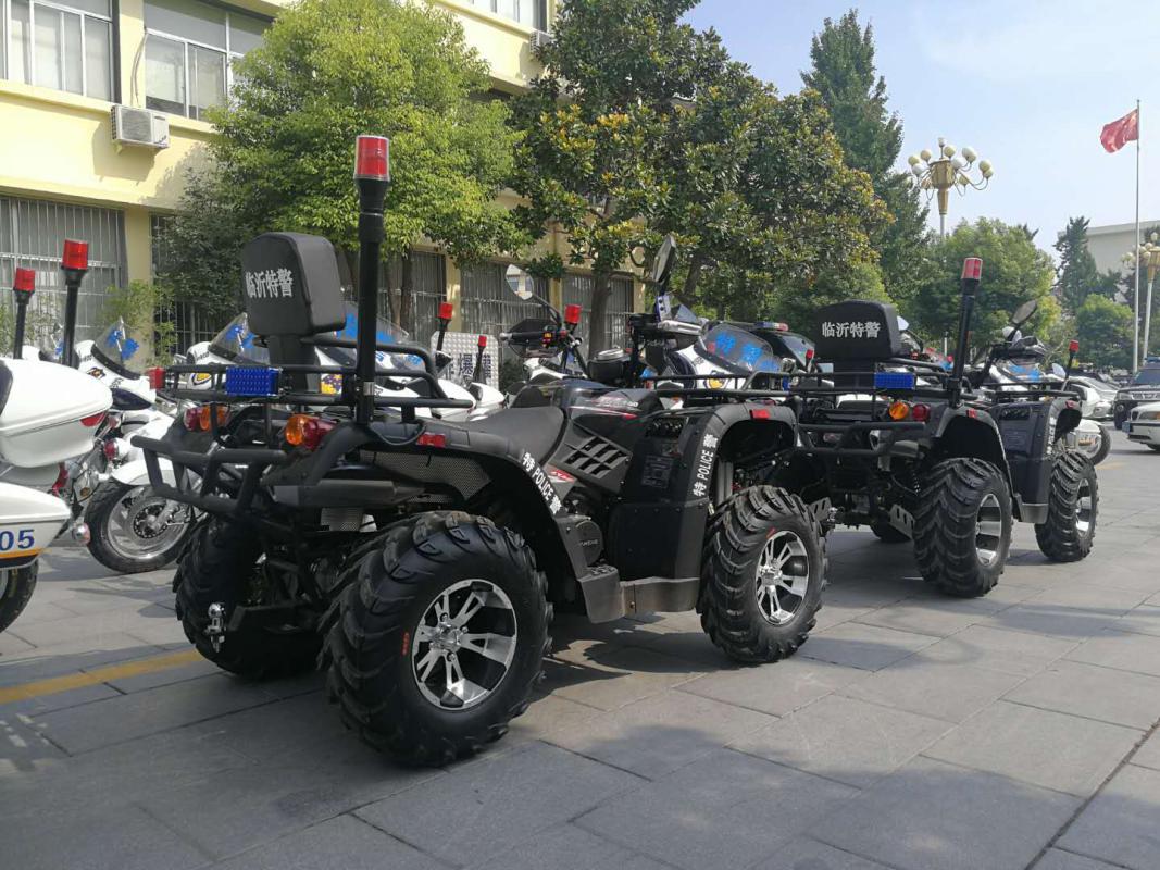 跃迪全地形车(轮式),该车简单实用,越野性能好,具有多种用途,且不受道路条件的限制。冬季可使用履带式结构,夏季可换装轮式车胎,可以一年四季在冰雪路面、沙滩、沼泽、街面上行驶,适合执行各种警务任务。