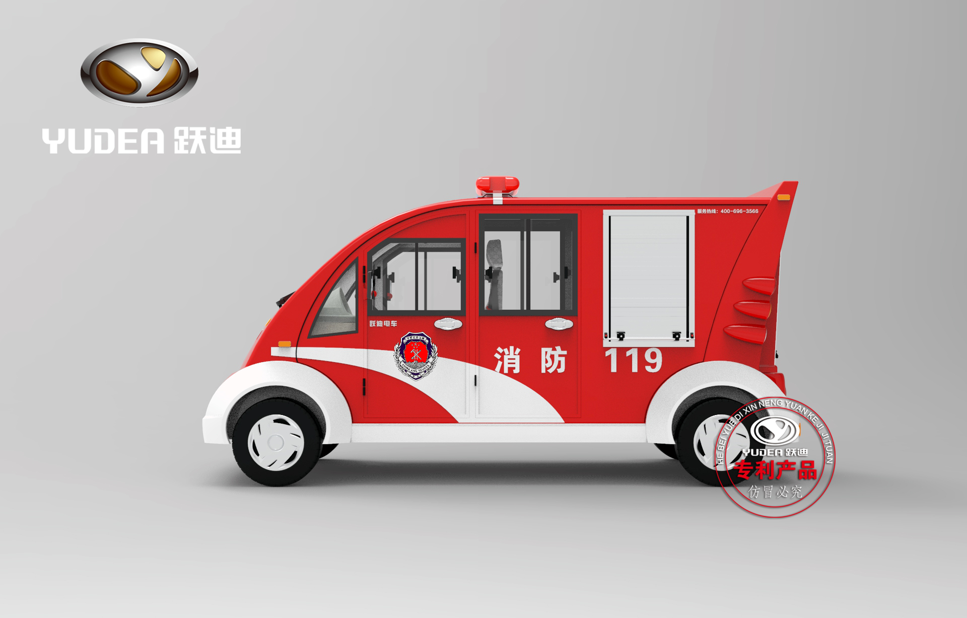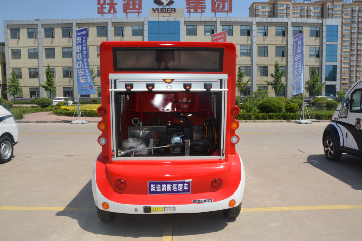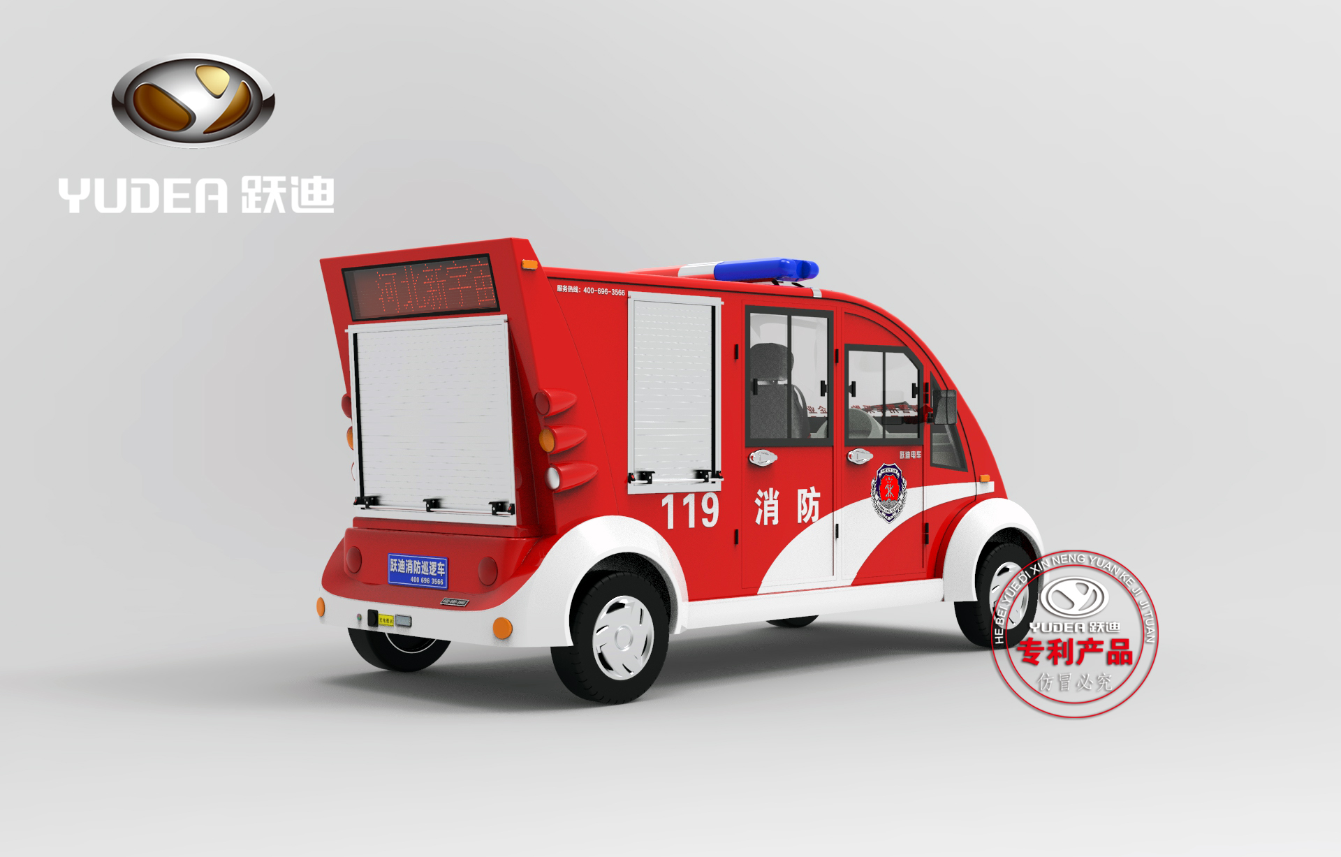跃迪消防巡逻车采用优越的汽车底盘技术、独立悬挂系统、金属结构,一次性钢模冲压结构,整体车身、及车架采用阴极电泳处理。更注重实用性,集警灯、喊话器等警务系统及工具箱于一体,消防器材齐全,能够及时做出反应。